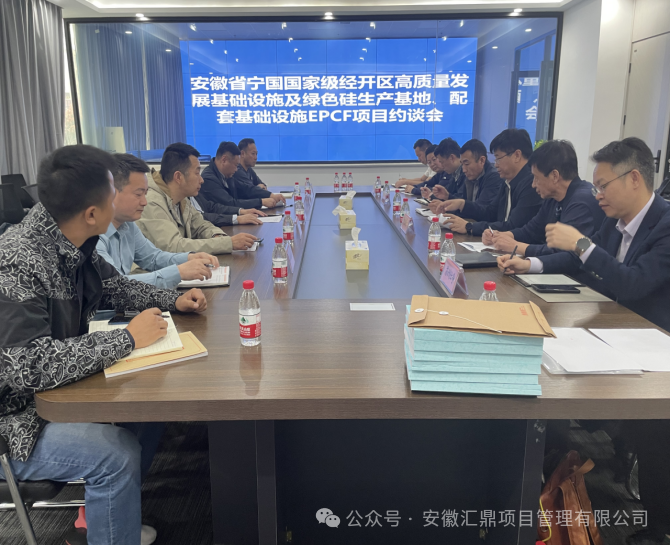 4月10日,安徽省宁国国家级经开区高质量发展基础设施及绿色硅生产基地、配套基础设施EPCF项目的中标单位约谈会在宁国云计算信息科技有限公司召开。汇鼎公司作为项目招标代理机构参加。
