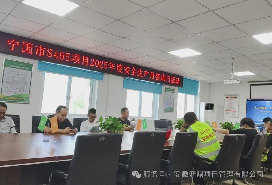 6月16日,汇鼎公司作为S465 黄土岗至杨家店一级公路建设工程(东北外环)项目跟踪审计单位,全程参与了由宁国市交通运输局主办的2025年度"安全生产月"咨询日活动。